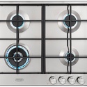 газовая на 4 конфорки • нержавеющая сталь • мощность: 8000 Вт • автоматический электроподжиг • газ-контроль • решетки: чугун • независимая установка • размеры (ШхГ): 58x50 см