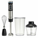 Тип: погружной (ручной) блендер • Мощность: 1200 Вт • Скорости: плавная регулировка, импульсный • Насадки: ножка, венчики, нож измельчителя