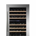 Тип: двухкамерный винный шкаф • Расположение: встраиваемый • Цвет: нерж.сталь, чёрный • Размеры (ШxВxГ): 590x885x560 мм • Количество дверей: однодверный • Общий объем: 117 л • Объем холодильной камеры: 117 л • Винный шкаф: 42 бут. • Разморозка: автоматическая • Управление: цифровой дисплей, электронное • Освещение в холодильной камере: есть • Перевешиваемые двери: есть • Материал полок: дерево
