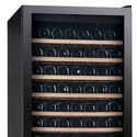 Тип: однокамерный винный шкаф • Расположение: отдельностоящий • Количество компрессоров: 1 • Цвет: чёрный • Размеры (ШxВxГ): 655x1835x680 мм • Количество дверей: однодверный • Общий объем: 490 л • Винный шкаф: 194 бут. • Разморозка: автоматическая • Управление: электронное • Освещение в холодильной камере: есть • Перевешиваемые двери: есть • Материал полок: дерево • Класс энергопотребления: D