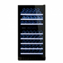 Тип: однокамерный винный шкаф • Расположение: встраиваемый • Цвет: чёрный • Размеры (ШxВxГ): 595x1200x680 мм • Количество дверей: однодверный • Общий объем: 270 л • Винный шкаф: 94 бут. • Разморозка: автоматическая • Управление: электронное • Освещение в холодильной камере: есть • Перевешиваемые двери: есть • Материал полок: дерево • Класс энергопотребления: D • Годовой расход энергии: 277 кВтч