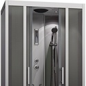Закрытая кабина, полностенная, двери раздвижные, тропический душ, вертикальный гидромассаж, габариты (ШхВхД): 80x215x120 см