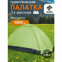 Производитель: Ecos Модель: Walk - Назначение: трекинговая, трехместная - Каркас: полусфера, дуг 2, 8.5 мм, стеклопластик - Общие размеры: 270x150x120 см Описание