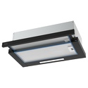 конструкция телескопическая • монтаж для встраивания • ширина 59.8 см • управление механическое/кнопочное • производительность мотора 670 м³/ч • цвет черный