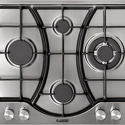 газовая на 4 конфорки • закаленное стекло • мощность: 8650 Вт • автоматический электроподжиг • газ-контроль • решетки: чугун • независимая установка