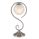 Настольная лампа декоративная стиля модерн для гостиной, кабинета или спальни имеет размеры 200x430 мм. Арматура светильника окрашена в серебрянный цвет. Лампы в комплекте - отсутствуют. В светильнике применяются лампы накаливания или светодиодная LED-лампа. Цвет плафонов - белый, с матовой поверхностью. Материал плафонов - стекло. Класс электробезопасности - II, степень пылевлагозащиты (IP) - 20. Максимальная мощность лампы (Вт) - 40. Светильник размещается на столе.