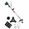 Комплектация- руководство по эксплуатации, - защитный кожух, - триммерная головка, - металлический нож, - плечевой ремень.
