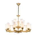 Подвесная люстра стиля модерн для гостиной, кабинета или спальни имеет размеры 920x1600 мм. Арматура светильника окрашена в латунный цвет. Лампы в комплекте - отсутствуют. В светильнике применяются лампы накаливания или светодиодная LED-лампа. Цвет плафонов - белый, с матовой поверхностью. Материал плафонов - стекло. Класс электробезопасности - I, степень пылевлагозащиты (IP) - 20. Максимальная мощность лампы (Вт) - 40. Светильник размещается на потолоке.