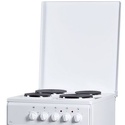 Тип конфорок: электрические • Рабочая поверхность: эмаль • Тип духовки: электрическая • Размеры (ШxВxГ): 500x850x600 мм • Цвет: белый • Конфигурация электрических конфорок: 2 x 1500 g 2 x 1000 g • Электрические конфорки: всего - 4 • Объем духовки: 50 л • Максимальная температура духовки: 280 °С • Очистка духовки: традиционная • Подсветка: есть • Количество стекол дверцы духовки: 2