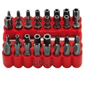 КомплектацияБитодержатель магнитный L = 60 мм;Биты Torq L = 25 мм (3 шт): 6; 8; 10 мм;Биты 3-х лопостные L = 25 мм (4 шт): 1; 2; 3; 4 мм;Биты Spanner (вилка) L = 25 мм (4 шт): 4; 6; 8; 10 мм;Биты 6-гранные (HEX) с отверстием L = 25 мм (6 шт): 2; 2.5; 3; 4; 5; 6 мм;Биты 6-гранные (HEX) с отверстием L = 25 мм (6 шт): 5/32?; 9/64?; 1/8?; 7/64?; 3/32?; 5/64?;Биты Torx с отверстием L = 25 мм (9 шт): T8H; T10H; T15H; T20H; Т25H; T27H; T30H; T35H; T40H