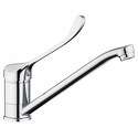 Назначение: кухонный • Конструкция: однорычажный • Монтаж: горизонтальный • Монтажные отверстия: 1 отверстие • Форма излива: традиционная • Душевая лейка в комплекте: нет • Донный клапан в комплекте: есть