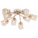 Серия Isabella – прекрасный вариант для современных интерьеров в теплой цветовой гамме. Арматура цвета матового золота выполнена из металла, а плафоны необычной формы – из янтарного стекла. Благодаря небольшой высоте потолочные светильники Isabella можно использовать в помещениях с невысокими потолками. Широкая линейка включает 3 потолочных светильника на 8, 6 и 4 рожка, а также бра.