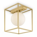 Нетривиальная игра с геометрией – сфера, заключенная в прямоугольное обрамление – яркое и весьма смелое дизайнерское решение. Стеклянные плафоны матово-белого цвета эффектно контрастируют с металлической арматурой роскошного золотого оттенка. Компактные размеры светильника позволяют использовать его даже в небольших комнатах с низкими потолками. В серии представлены люстры различной высоты на 3 и 1 плафон, а также настольная лампа.