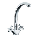 Назначение: кухонный • Конструкция: двухрычажный • Монтаж: горизонтальный • Монтажные отверстия: 1 отверстие • Форма излива: традиционная • Душевая лейка в комплекте: нет • Донный клапан в комплекте: есть
