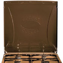 Чуть кривоватая решетка над комфорками. При невключенном освещении духовки - термометр малозаметен.