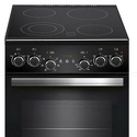 Тип конфорок: электрические • Рабочая поверхность: стеклокерамика • Тип духовки: электрическая • Размеры (ШxВxГ): 500x850x585 мм • Цвет: черный • Электрические конфорки: всего - 4 (1 двухконтурная) • Объем духовки: 52 л • Конвекция: есть • Гриль: есть, электрический • Очистка духовки: традиционная • Подсветка: есть • Вертел: есть • Тип управления: электронное • Переключатели: поворотные, сенсорные • Дисплей: есть