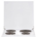 Тип конфорок: электрические • Рабочая поверхность: эмаль • Тип духовки: электрическая • Размеры (ШxВxГ): 600x850x600 мм • Цвет: белый • Электрические конфорки: всего - 4 • Объем духовки: 52 л • Гриль: есть, электрический • Очистка духовки: традиционная • Подсветка: есть • Вертел: есть • Выдвижная ниша духовки: есть • Тип управления: механическое • Переключатели: поворотные • Дисплей: есть • Часы: есть