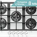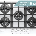 газовая на 5 конфорок • закаленное стекло • мощность: 10800 Вт • автоматический электроподжиг • газ-контроль • решетки: чугун • независимая установка • размеры (ШхГ): 70x52.5 см
