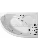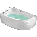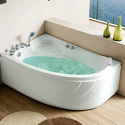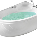 Материал: акрил • Расположение: отдельно стоящая, угловая конструкция • Форма: нестандартная • Количество мест: одноместная • Гидромассаж: есть, 5 форсунок • Подсветка: есть • Комфорт: подголовник • Смеситель в комплекте: есть • Размеры (ДxШxВ): 150x120x57 см