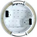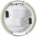 Материал: акрил • Расположение: встраиваемая • Форма: круглая • Количество мест: двухместная • Гидромассаж: есть • Аэромассаж: есть • Озонирование: есть • Подсветка: есть • Комфорт: подголовник • Размеры (ДxШxВ): 210 см