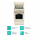 Варочная поверхность: газовая, эмалированная • Конфорки: газ 4 шт • Духовка: электрическая, объем 70 л, 3.3 кВт • Функции: газ-контроль, гриль, конвекция • Ширина плиты: 50 см