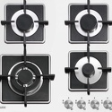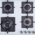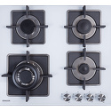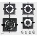 Поверхность: варочная панель • Тип поверхности: газовая • Рабочая поверхность: закаленное стекло • Число конфорок: 4 • Установка: независимая • Газовые конфорки: всего - 4 • Газ-контроль конфорок: есть • Тип управления: механическое • Переключатели: поворотные • Электроподжиг: есть, автоматический • Размеры: 590x510x59 мм • Размер ниши для встраивания: 560x490 мм • Цвет: панель - белый