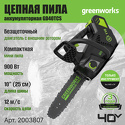 Производитель: Greenworks Модель: GD40TCS - Тип пилы: цепная, переносная - Полотно: 250 мм - Питание: аккумулятор - Вес: 2.35 кг Описание