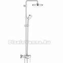 Производитель: Grohe Модель: Euphoria System 190 26249 - Устройство: душевая система - Смеситель: термостатический - Ручная лейка: размер 100 мм, настройки 3 шт - Верхний душ: размер 190 мм, настройки 1 шт - Комплектация: ручной душ, смеситель, стойка, шланг, крепление ручного душа, полка Описание