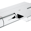 - Отличный дизайн. - Очень удобные ручки, на других термостатах они очень часто просто круглые, без выступов и повернуть мыльными руками будет непросто. - Выход на душ смещённый от центра, что удобно - Удобная полочка, можно ставить шампуни, гели для душа и т.д. - Поверхность от разводов легко очищается просто влажной микрофиброй без использования чистящих средств.
