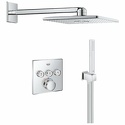 Производитель: Grohe Модель: Grohtherm SmartControl 34705 - Устройство: душевая система - Смеситель: термостатический - Ручная лейка: настройки 1 шт - Верхний душ: размер 310 мм, настройки 2 шт - Комплектация: ручной душ, смеситель, шланг, крепление ручного душа Описание