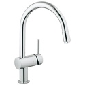 Производитель: Grohe Модель: Minta 32918 - назначение: кухонный - конструкция: однорычажный - монтаж: горизонтальный - клапан: керамический - материал: нерж. сталь, покрытие - хром Описание