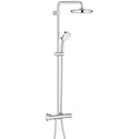 Устройство: душевая система • Смеситель: термостатический • Ручная лейка: настройки 2 шт • Верхний душ: размер 226 мм, настройки 4 шт • Комплектация: ручной душ, смеситель, стойка, шланг, крепление ручного душа
