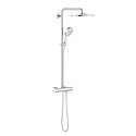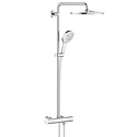Устройство: душевая система • Смеситель: термостатический • Ручной душ (душевая лейка): размер 130 мм, настройки 3 шт • Верхний душ (тропический): размер 310 мм, настройки 1 шт • Комплектация: ручной душ, верхний душ, смеситель, стойка, шланг, крепление ручного душа