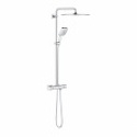 Устройство: душевая система • Смеситель: термостатический • Ручной душ (душевая лейка): размер 130 мм, настройки 3 шт • Верхний душ (тропический): размер 310 мм, настройки 1 шт • Комплектация: ручной душ, верхний душ, смеситель, стойка, шланг, крепление ручного душа