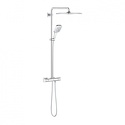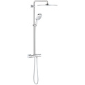 Устройство: душевая система • Смеситель: термостатический • Ручной душ (душевая лейка): размер 130 мм, настройки 3 шт • Верхний душ (тропический): размер 310 мм, настройки 1 шт • Комплектация: ручной душ, верхний душ, смеситель, стойка, шланг, крепление ручного душа