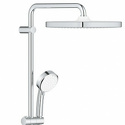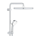 Устройство: душевая система • Смеситель: термостатический • Ручной душ (душевая лейка): размер 100 мм, настройки 2 шт • Верхний душ (тропический): размер 250 мм, настройки 1 шт • Комплектация: ручной душ, верхний душ, смеситель, стойка, шланг, крепление ручного душа