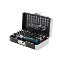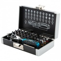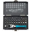 КомплектацияБиты:- PH1, PH2?2, PH3;- PZ1, PZ2?2, PZ3;- SL3, SL4, SL5, SL6;- TH10, TH15, TH20, TH25, TH27, TH30, TH40;- T10, T15, T20, T25, T27, T30, T40;- H3, H4, H5, H6.Переходник:- Шестигранник 1/4" – квадрат 1/4".Битодержатель.Ключ трещоточный 1/4".
