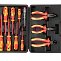 Комплектация- Отвертки SL: 3.5х100мм, 4x100, 5.5x125, 6.5x150- Отвертки PH: 0x75, 1x100, 2x100- Индикаторная отвёртка- Бокорезы 160 мм- Плоскогубцы комбинированные 160 мм- Утконосы 160 мм