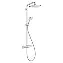 Производитель: Hansgrohe Модель: Croma E Showerpipe 280 27630000 - Устройство: душевая система - Смеситель: термостатический - Ручной душ (душевая лейка): размер 93 мм Описание