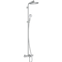 Производитель: Hansgrohe Модель: Raindance E 27363 - Устройство: душевая система - Смеситель: термостатический - Ручная лейка: размер 128 мм - Верхний душ: размер 300 мм, настройки 1 шт - Комплектация: ручной душ, смеситель, стойка, шланг, крепление ручного душа, полка Описание