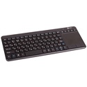 Состав: клавиатура • Назначение: настольный компьютер, ноутбук, телевизор • Подключение: беспроводное (радиоканал) • Конструкция: стандартная • Цвет: черный • Беспроводной адаптер: USB • Количество клавиш: 85 • Дополнительные клавиши: 5 (броузинг, громкость, отключение звука) • Встроенные устройства: тачпад • Клавиатура: 2 x AAA • Кабели: беспроводной ресивер - • Радиус действия беспроводного адаптера: 10 м