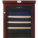 Тип: двухкамерный винный шкаф • Расположение: отдельностоящий • Количество компрессоров: 1 • Цвет: венге, вишневый, дуб, коричневый • Размеры (ШxВxГ): 670x980x593 мм • Количество дверей: однодверный • Винный шкаф: 45 бут. • Разморозка: автоматическая • Управление: цифровой дисплей, электронное • Освещение в холодильной камере: есть • Материал полок: дерево • Сигнал об открытой двери: световая индикация