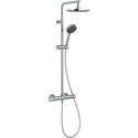 Устройство: душевая система • Смеситель: термостатический • Ручной душ (душевая лейка): размер 100 мм, настройки 3 шт • Верхний душ (тропический): размер 200 мм, настройки 1 шт • Комплектация: ручной душ, верхний душ, смеситель, стойка, шланг, крепление ручного душа