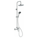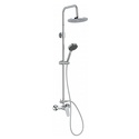 Устройство: душевая система • Смеситель: джойстик • Ручной душ (душевая лейка): размер 100 мм, настройки 5 шт • Верхний душ (тропический): размер 200 мм, настройки 1 шт • Комплектация: ручной душ, верхний душ, смеситель, стойка, шланг, крепление ручного душа