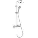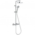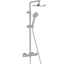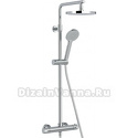 Устройство: душевая система • Смеситель: термостатический • Ручной душ (душевая лейка): размер 100 мм, настройки 1 шт • Верхний душ (тропический): размер 200 мм, настройки 1 шт • Комплектация: ручной душ, верхний душ, смеситель, стойка, шланг, крепление ручного душа