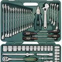 Комплектация- Головки торцевые 6-ти гранные, 10 шт.: 22, 24, 27, 30, 32, 36, 38, 41, 46, 50 мм.;- Головки торцевые 12-ти гранные, 12 шт.: 7/8", 15/16", 1", 1-1/8", 1-3/16", 1-5/16", 1-3/8", 1-7/16", 1-5/8", 1-3/4", 1-7/8", 2";- Трещоточная рукоятка;- Удлинители, 3 шт.: 100, 200, 450 мм.;- Шарнир карданный.