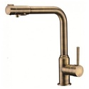 Назначение: кухонный • Конструкция: однорычажный • Монтаж: горизонтальный • Материал: латунь, покрытие - бронза • Монтажные отверстия: 1 отверстие • Форма излива: традиционная • Душевая лейка в комплекте: нет • Донный клапан в комплекте: есть