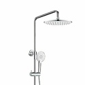 Устройство: душевая система • Смеситель: термостатический • Ручной душ (душевая лейка): настройки 2 шт • Верхний душ (тропический): размер 222 мм, настройки 1 шт • Комплектация: ручной душ, верхний душ, смеситель, стойка, шланг, крепление ручного душа