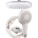 Устройство: душевая система • Ручной душ (душевая лейка): настройки 2 шт • Верхний душ (тропический): настройки 1 шт • Комплектация: ручной душ, верхний душ, шланг, крепление ручного душа