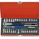 Комплектация- Трещотка 1/4", 140 мм, 24 зубца, флажковая, фиксатор KING TONY 2779-55G;- Отвертка вороток 1/4" KING TONY 2178AE;- Вороток 1/4", 115 мм, скользящий KING TONY 2571-45;- Кардан 1/4" KING TONY 2792;- Удлинитель 1/4", 50 мм KING TONY 2221-02;- Удлинитель 1/4", 100 мм KING TONY 2221-04;- Торцевые головки KING TONY серии 2335M, размеры: 4, 4.5, 5, 5.5, 6, 7, 8, 9, 10, 11, 12, 13 мм;- Торцевые головки KING TONY TORX Е-стандарт серии 2375M, размеры: E4, E5, E6, E7, E8;- Насадки (биты) торцевые 1/4", TORX, KING TONY серии 2033M: T8, T9, T10, T15, T20, T25, T27, T30, T40;- Насадки (биты) торцевые 1/4", HEX, KING TONY серии 2035: 3, 4, 5, 6, 7, 8, 10 мм.- Кейс